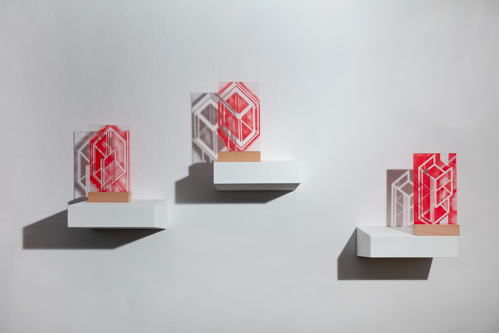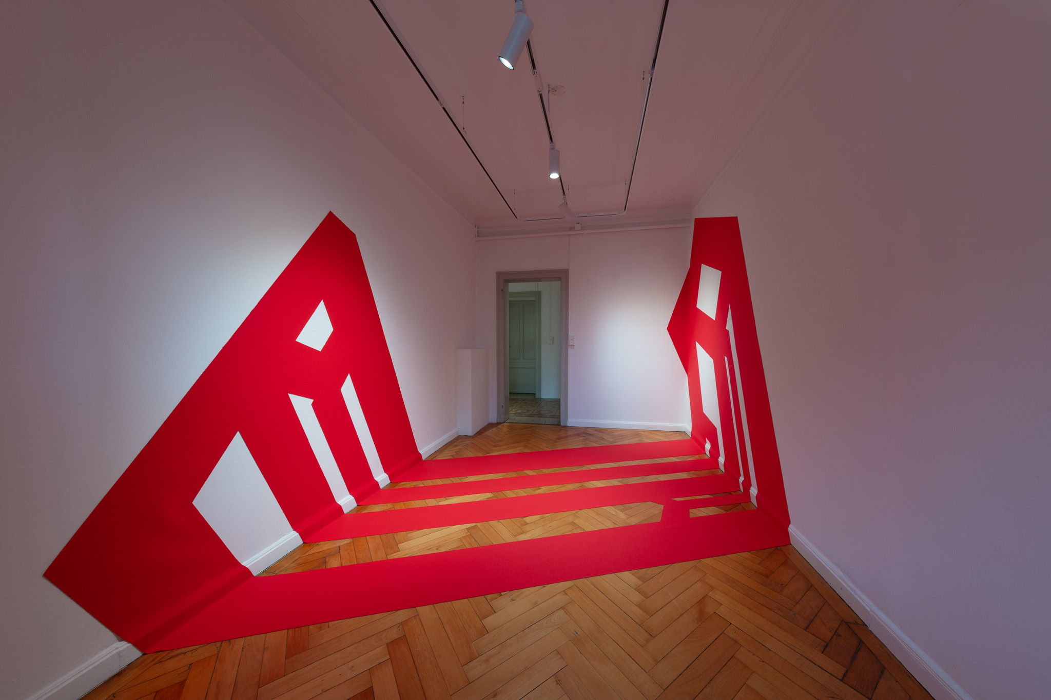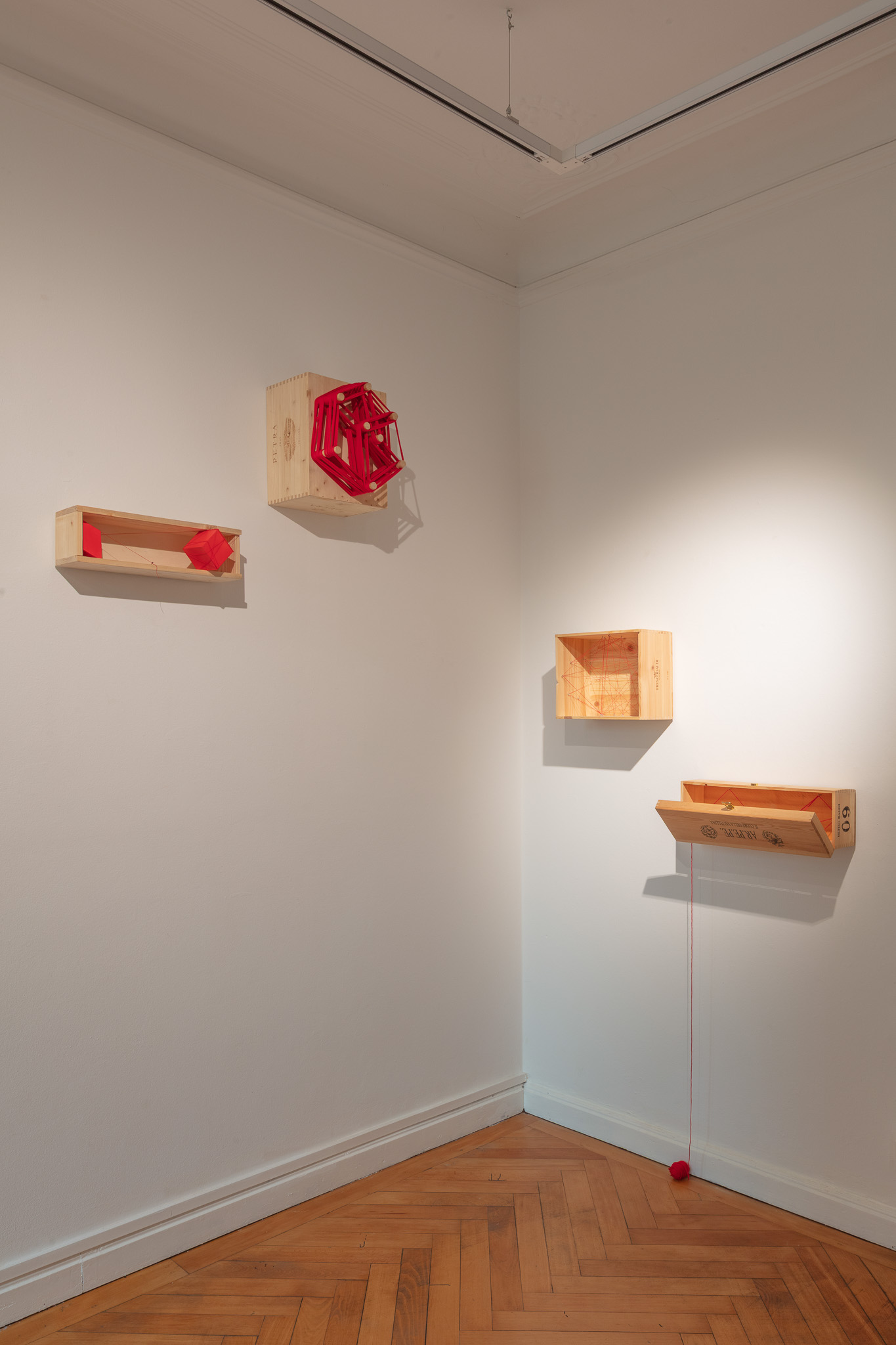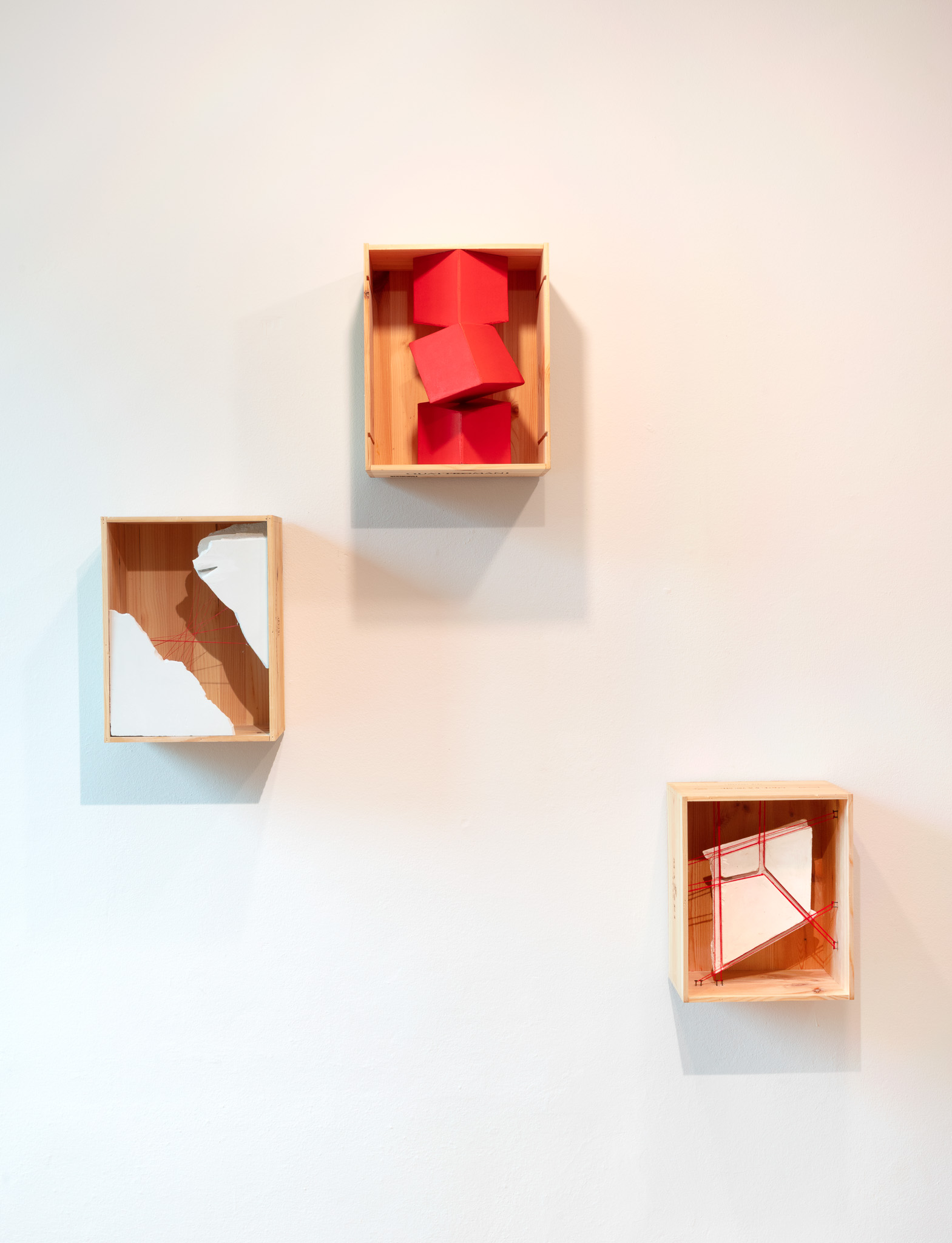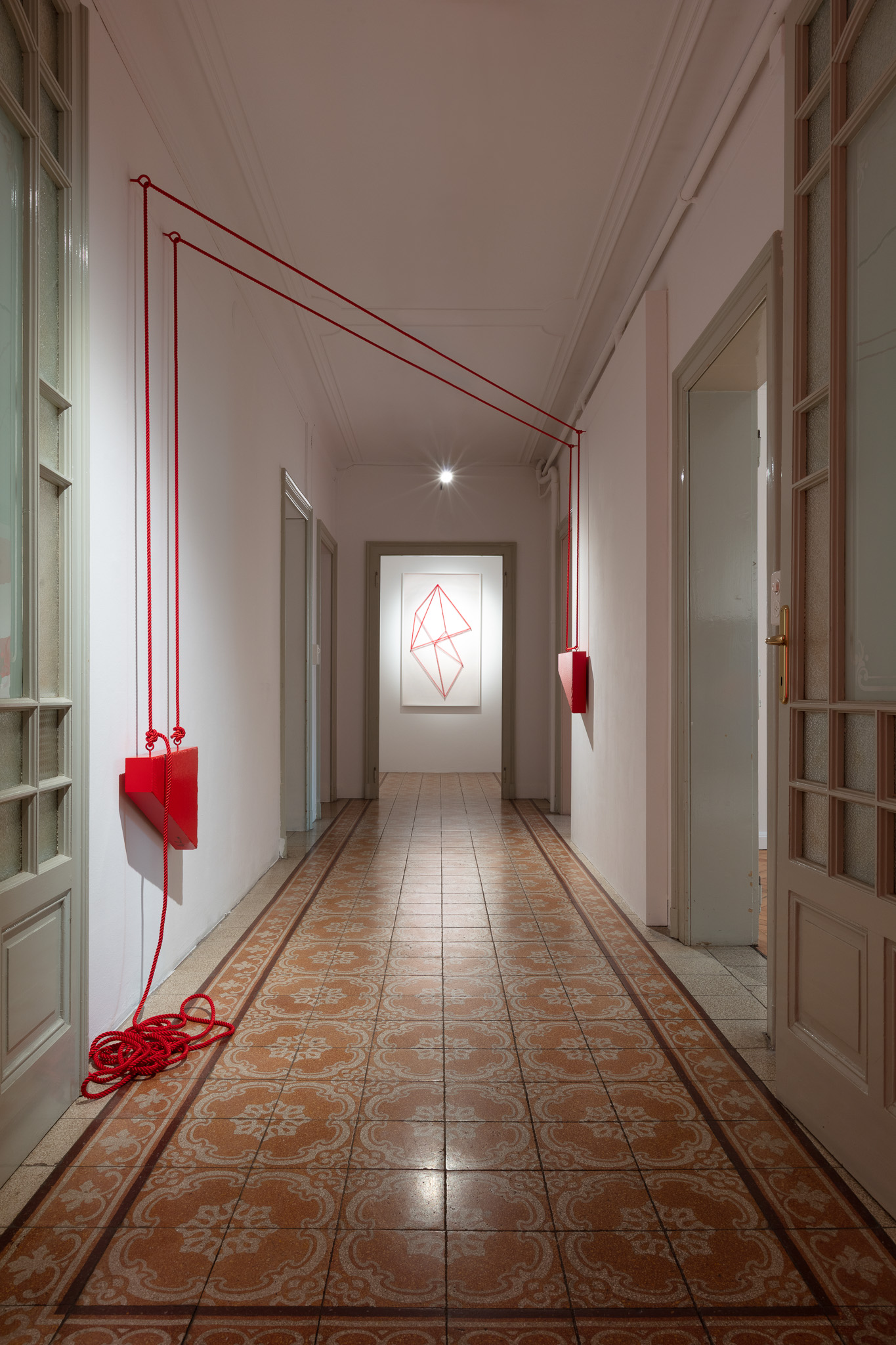 Elemento ricorrente dell’intero progetto è il colore rosso, che attraversa la mostra come una grammatica visiva comune. Il rosso diventa un segno di continuità capace di unificare materiali diversi — dalla pietra alla gommapiuma, dal plexiglas alla pittura — e di stabilire un equilibrio formale tra le opere.